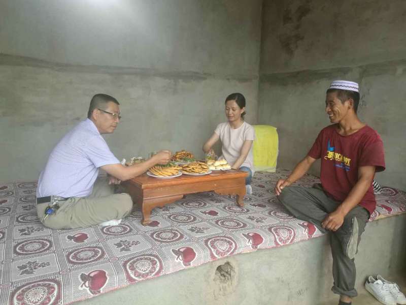 时值穆斯林群众的肉孜节,bet5365官网一行7人带着新采购的衣服、水果和玩具前往霍城县大西沟苜蓿台子村给亲戚们拜年。一来到村委会,许多亲戚就已经等在门口,与干部职工们一起分别前往自己家中